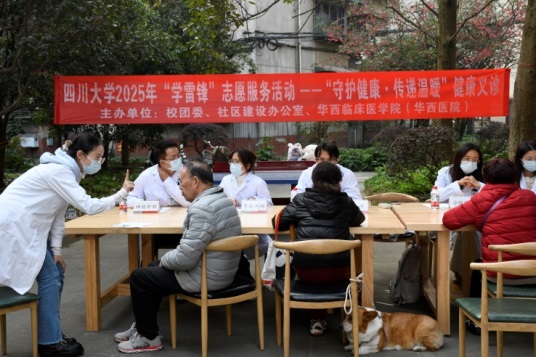 2025年3月1日,春风和煦、阳光明媚,四川大学社区建设办公室、校团委、华西临床医学院,在学校望江校区家属区,联合举办了四川大学2025年“学雷锋”志愿服务活动——“守护健康·传递温暖”健康义诊,为居民们送去春日里的健康关怀。