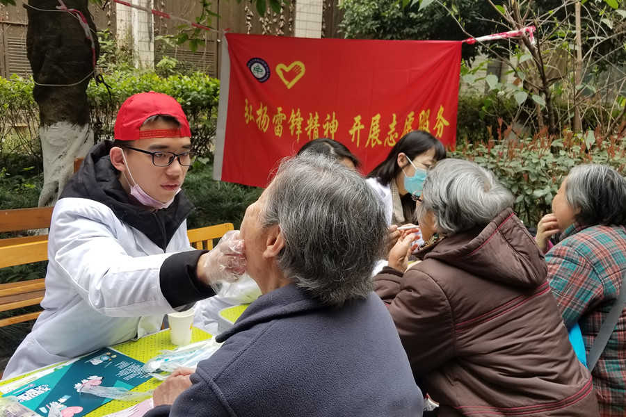 在第56个“学雷锋日”,四川大学社区建设办公室联合校团委、华西口腔医学院(华西口腔医院),在四川大学望江校区南园家属小区开展了一次与口腔健康相关的义诊活动。