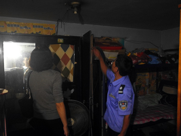 图为检查高知楼地下室员工宿舍