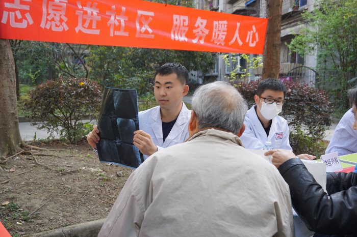川大家园社区志愿服务队的志愿者们提前到场进行现场布置,在活动过程中,及时引导前来咨询的居民群众有序排队;来自华西不同专业的医生们热情接待了前来咨询问诊的小区居民们,仔细查看居民们带来的病例、诊疗单等,耐心解答他们的各项疑问并给出相关建议。