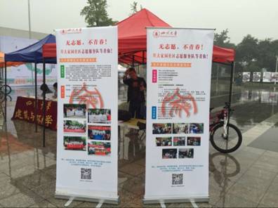 为了给川大家园社区志愿服务队注入新鲜的血液,加强三校区之间的联系以及活动开展的广度,2016年10月20日上午九时到十二时,四川大学社区建设办公室组织川大家园社区志愿服务队冒着蒙蒙细雨在四川大学(江安校区)青春广场进行了2016年新一届的服务队志愿者招募活动。