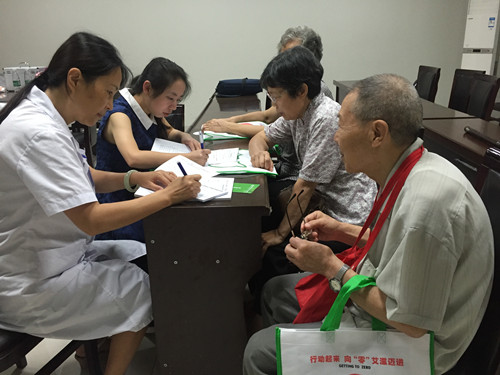 图为 社区医院的医生在为居民进行疫苗接种的信息登记