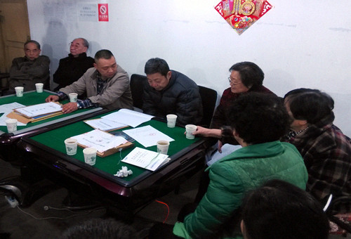 图为 房屋漏雨维修工程工作小组成员唱标