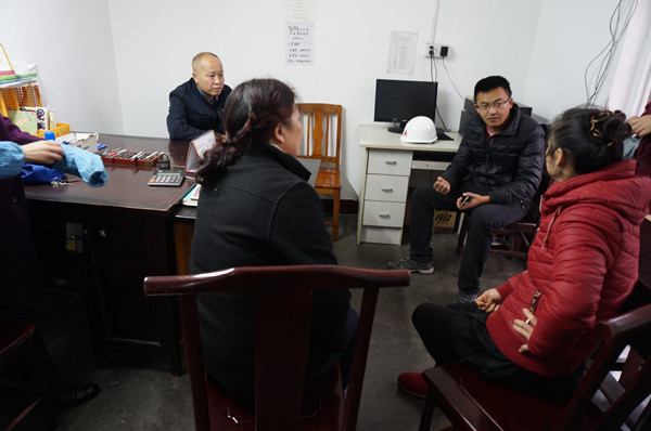 图为 业委会、施工方及房屋承租人进行沟通