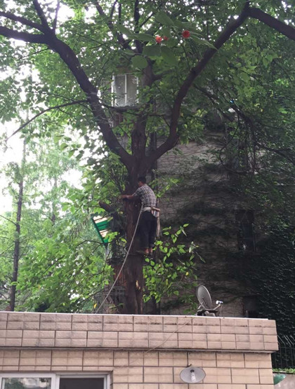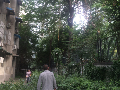 因本次排危难度较大,为保证危树排险的顺利进行及安全,社区建设办公室和专业的园林公司一起多次对3棵树进行了考察,并制定出具体的排危方案。社区建设办公室提前在小区张贴了排危通知。