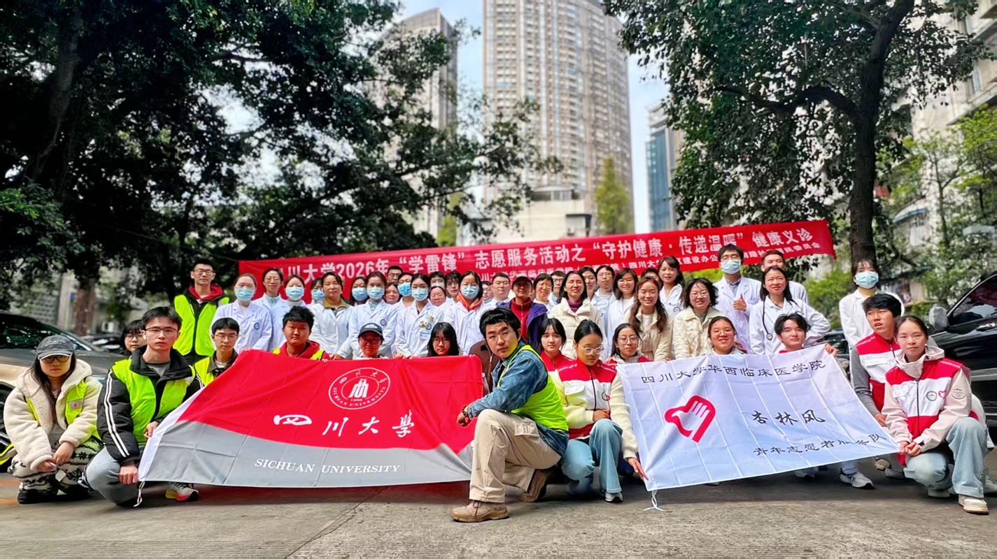 2026年3月21日,四川大学社区建设办公室联合校团委、华西临床医学院(华西医院),以及新南路社区居民委员会,在四川大学华西校区光明路小区举办四川大学2026年“学雷锋”志愿服务活动之“守护健康·传递温暖”健康义诊。