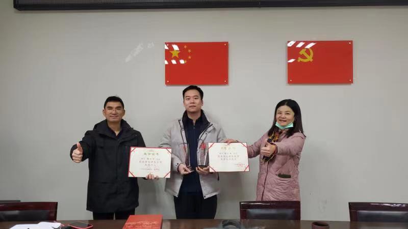 接下来,支部书记严成辉同志和副主任康平同志分别为陈小龙同志颁发了“四川大学抗击新冠肺炎疫情优秀共产党员”和“四川大学抗击新冠肺炎疫情先进个人”的荣誉证书和奖杯。在去年抗击新冠肺炎疫情的战役中,陈小龙同志主动请缨,带领26名首批湖北返蓉人员做核酸检测,并不惧感染风险多次接送境外返蓉人员,充分发扬了社区建设办公室党支部党员们“勇于担当、冲锋在前”的精神。
