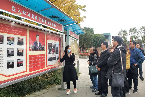 党员们首先参观了天府农耕文化博物馆,其中的史料和布景让人体会到了从古蜀农耕文明到现代乡村的变迁。随后,在讲解员的带领下,沿着习总书记的视察路线进行了参观学习。社区信息公开栏中的村情简介、领导班子、财务收支等信息展示了现代乡村的治理体系;村中设立的各种便民服务站点、设施,村民的居住条件和生活环境让人感受到了新时代乡村建设的新面貌。近距离接触现代乡村,让党员们深刻感受到了国家实施乡村振兴战略所带来的实际成效。