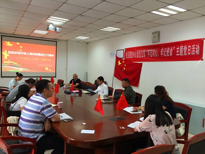 为庆祝中华人民共和国成立70周年、弘扬爱国主义精神,929日上午,社区建设办公室党支部开展了“我和我的祖国”主题党日活动,坚定党员同志守初心、担使命,把爱国情、报国志融入伟大奋斗和学校事业发展中的决心。