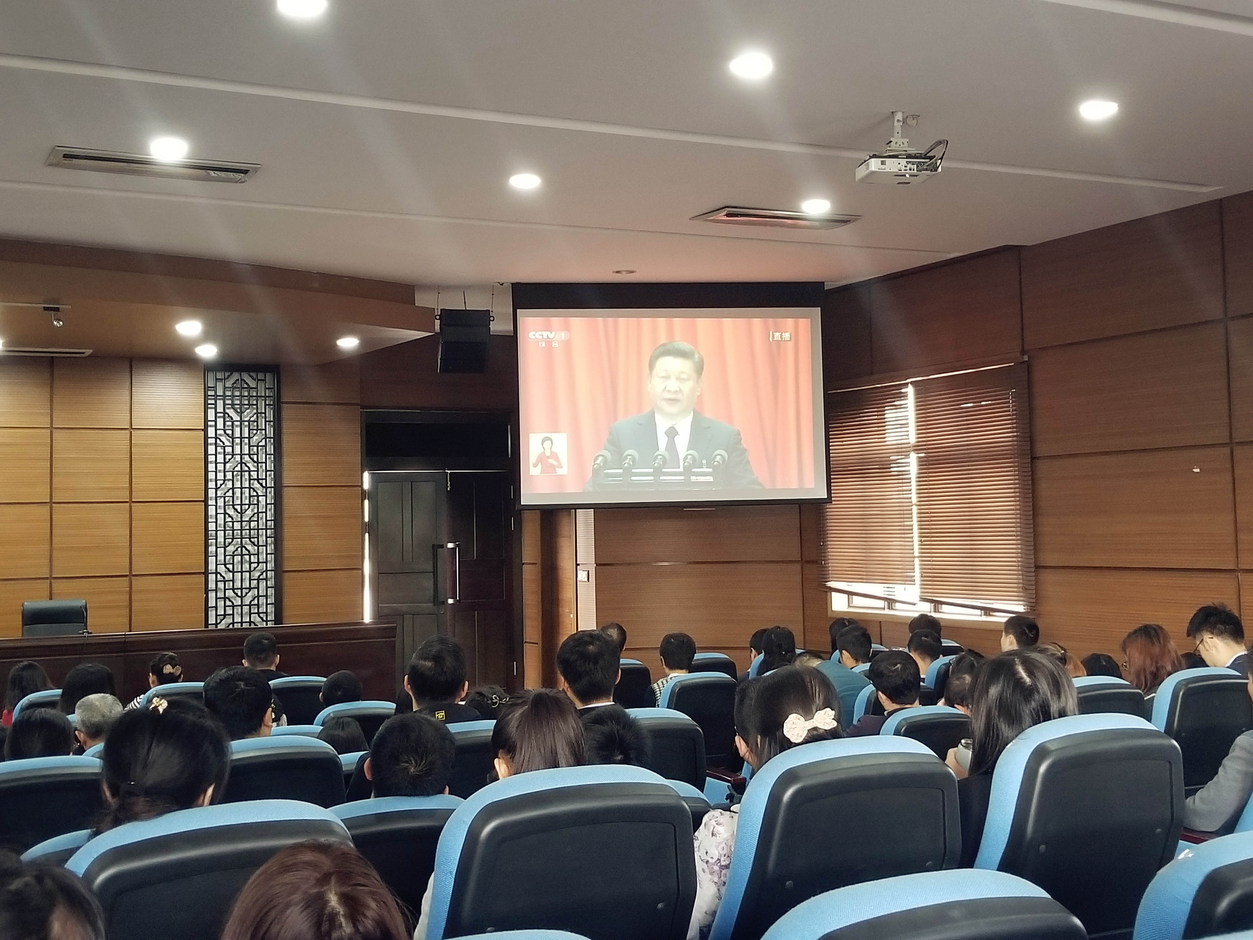 2017年10月18日上午9:00,中国共产党第十九次全国代表大会在人民大会堂隆重开幕。在四川大学机关党委的组织下,社区建设办公室党支部在望江办公楼414会议室集中收看了开幕会盛况。在三个半小时的时间里,党支部的党员们个个精神抖擞,聚精会神地认真收看、聆听了习近平总书记的报告,认真做好笔记,拍下精彩时刻。怀着对未来的美好愿景,带着自信和决心,牢记自己身上的神圣使命,全体党员同志共同见证这一激动人心的历史时刻。