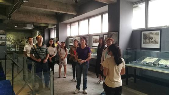 建川博物馆聚落由民营企业家樊建川创建,位于中国博物馆小镇——大邑县安仁镇,占地500亩,建筑面积10余万平方米,拥有藏品一千余万件,其中国家一级文物425件。博物馆以“为了和平,收藏战争;为了未来,收藏教训;为了安宁,收藏灾难;为了传承,收藏民俗”为主题,现已建成开放抗战、民俗、红色年代、抗震救灾四大系列32座场馆,是目前国内民间资本投入最多、建设规模和展览面积最大,收藏内容最丰富的民间博物馆。在讲解员带领下,大家依次参观了共产党抗战文史馆、地震救灾馆等几个场馆以及中国抗日壮士雕塑广场。