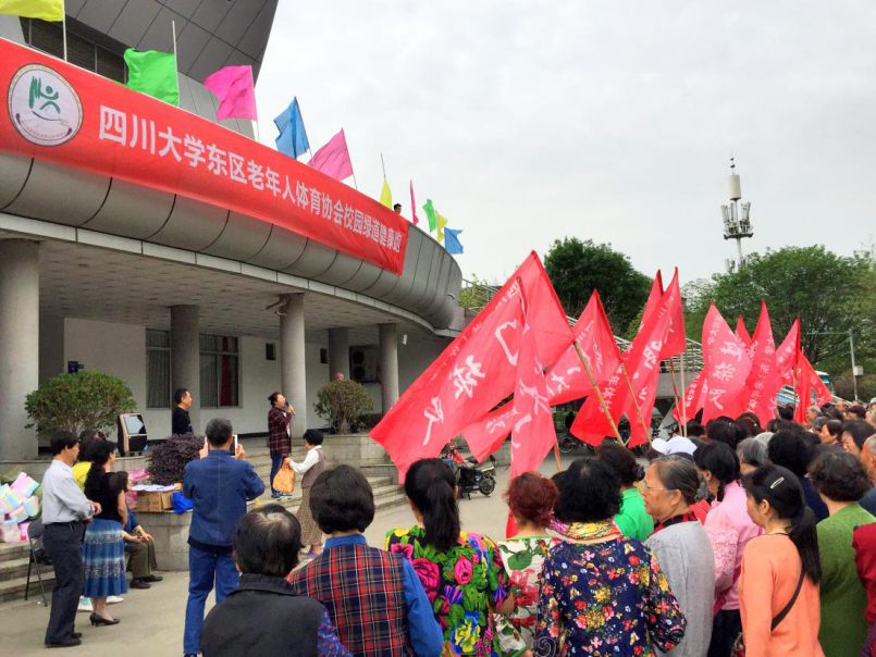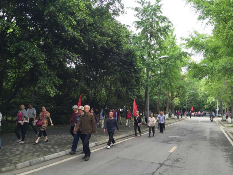 2017年5月4日上午,四川大学东区老体协举办了“校园绿道健康跑”活动。此次活动从体育馆出发,沿学府东路和玉章南路,经东区荷花池返回原地,全程共3公里左右。来自学校各单位近300位老同志参加了此次活动。