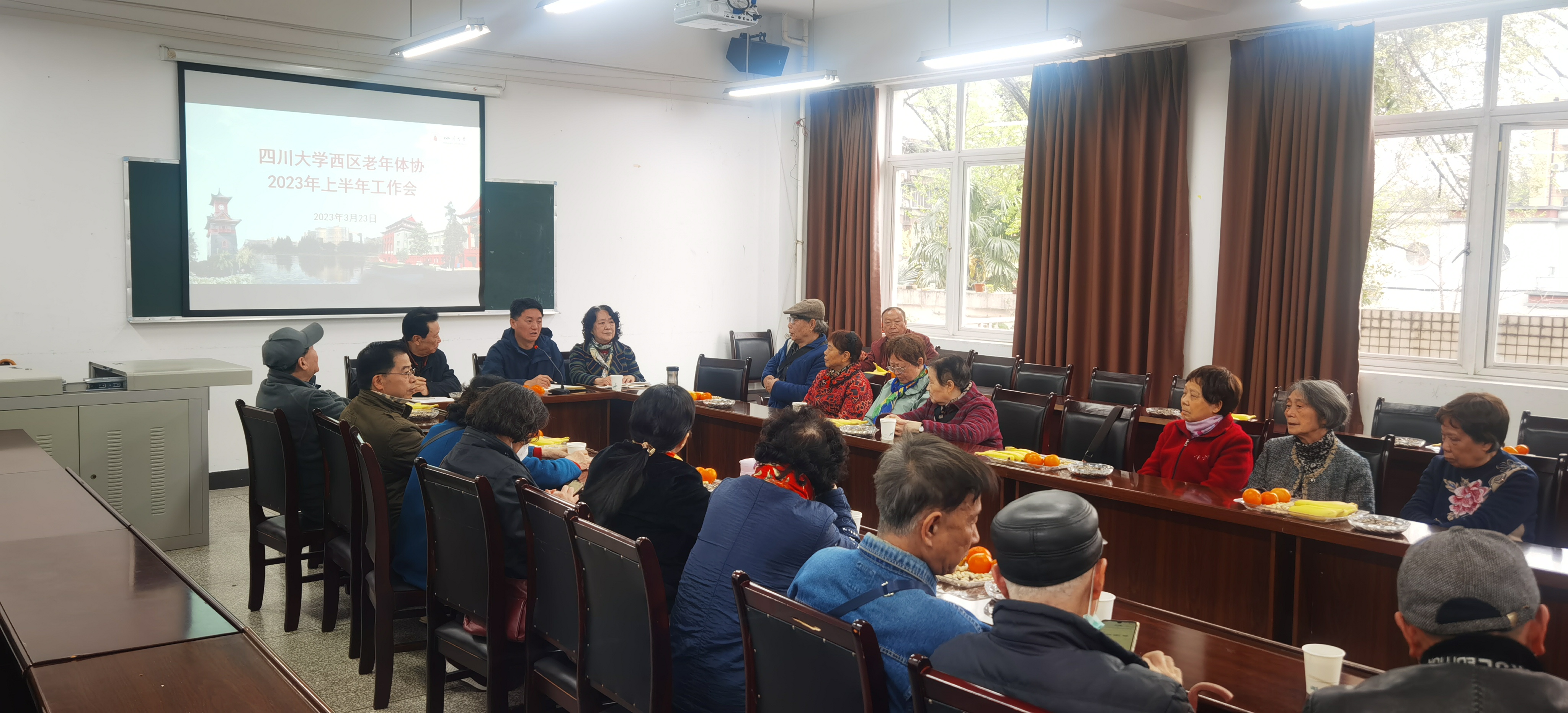 3月23日,四川大学望江西区老年体协在文华活动中心3楼会议室召开了2023年上半年工作会。西区老年体协主席罗泽民及协会成员30余人,老干部党总支书记、离退休工作处处长任泰山参会。会议由西区体协副主席卢生元主持。