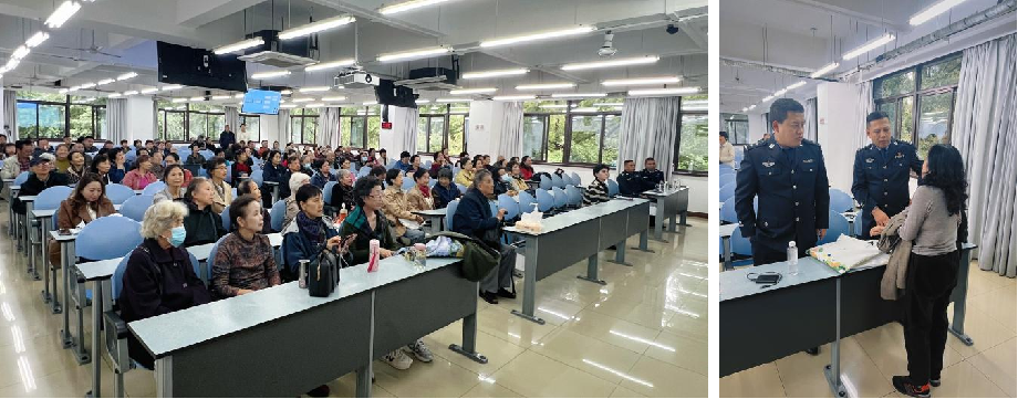 在学校“敬老月”活动深入开展、弘扬中华民族孝亲敬老传统美德的浓厚氛围中,10月22日下午,由华西医院人力资源部、安全保卫部联合举办的2025年第七期“生活的温度”退休职工系列活动在医院厚德楼201教室举行。本期内容是反诈宣传讲座,邀请成都市公安局武侯区分局刑侦大队中队长徐太军警官、马拉福警官、赵宁生警官讲授《常见侵财案件识别与防范》及《预防电信诈骗小知识》,人力资源部杨帆副部长主持,100余名退休老师参加。