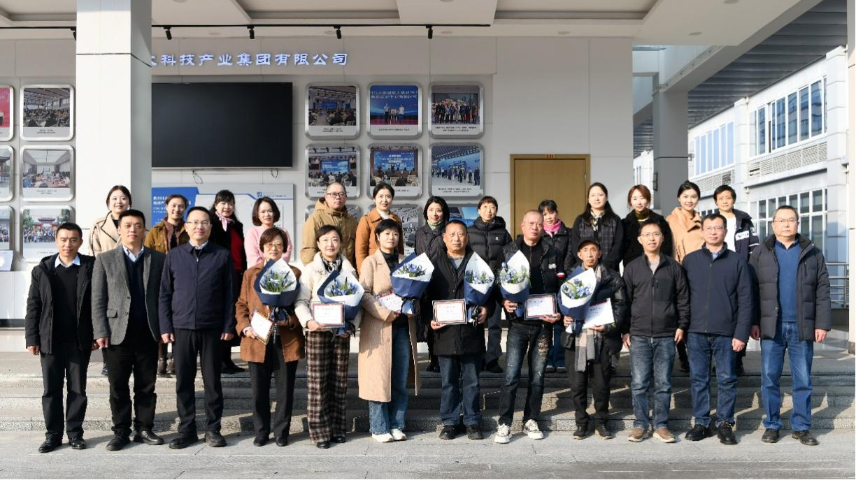 集团总经理陈森、副总经理龙毅为退休职工代表颁发荣休证书,青年职工献上鲜花和祝福表达对前辈的致敬。