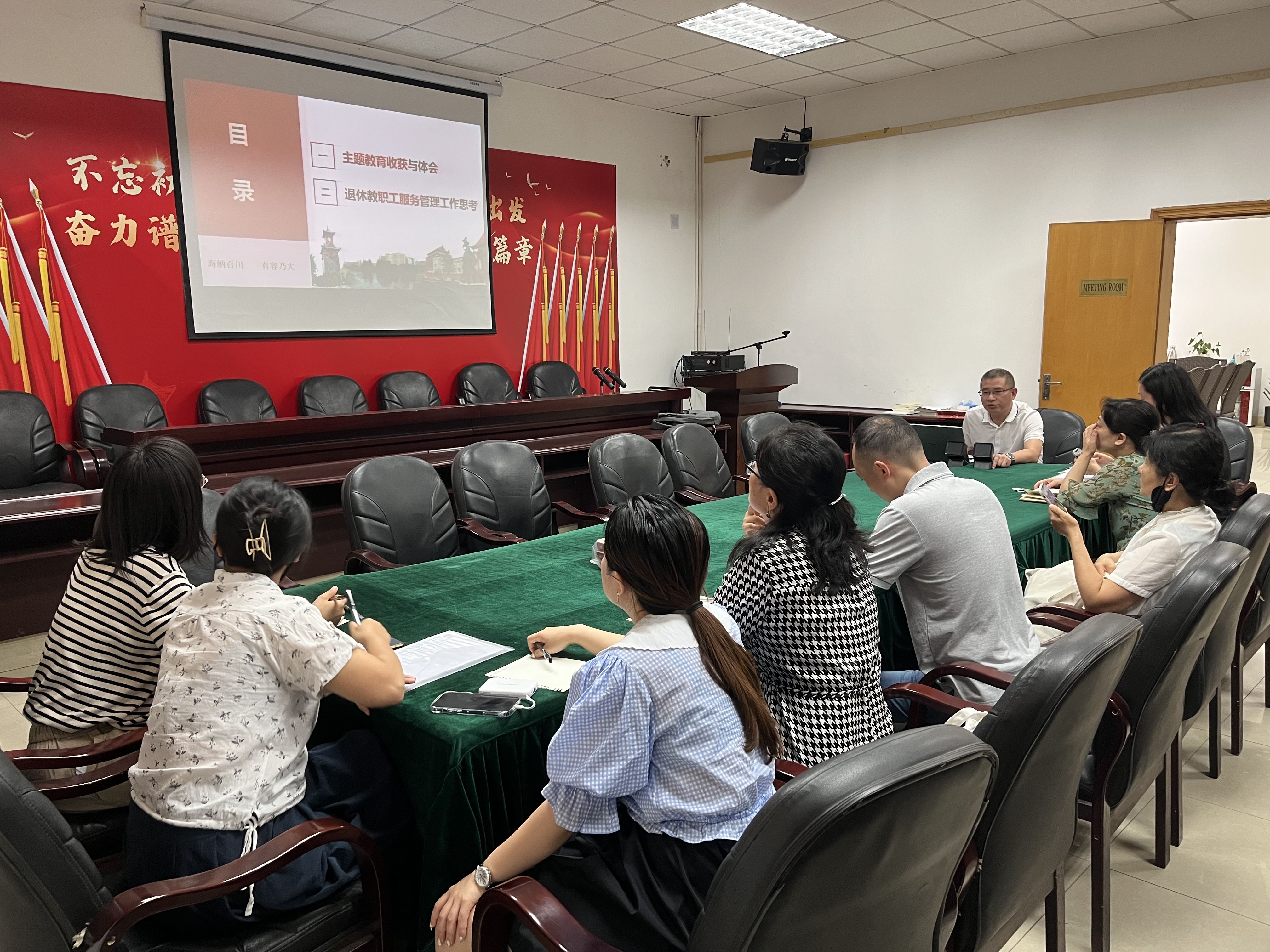 唐洪以《学思想 强党性——深入推进学校退休教职工服务管理工作》为题,和大家分享了主题教育的收获体会,并结合工作实际从“强化政治引领,确保退休干部党员听党话、跟党走”“用心用情,确保精准服务做细落实”“加强老年平台建设,发挥老同志作用”三个方面详细阐述了对学校退休教职工服务管理工作的思考。教育引导全体党员干部把深刻领会、牢牢把握主题教育“学思想 强党性 重实践 建新功”的总要求,增进对习近平新时代中国特色社会主义思想的政治认同、思想认同、理论认同、情感认同,自觉用习近平新时代中国特色社会主义思想指导各项工作。