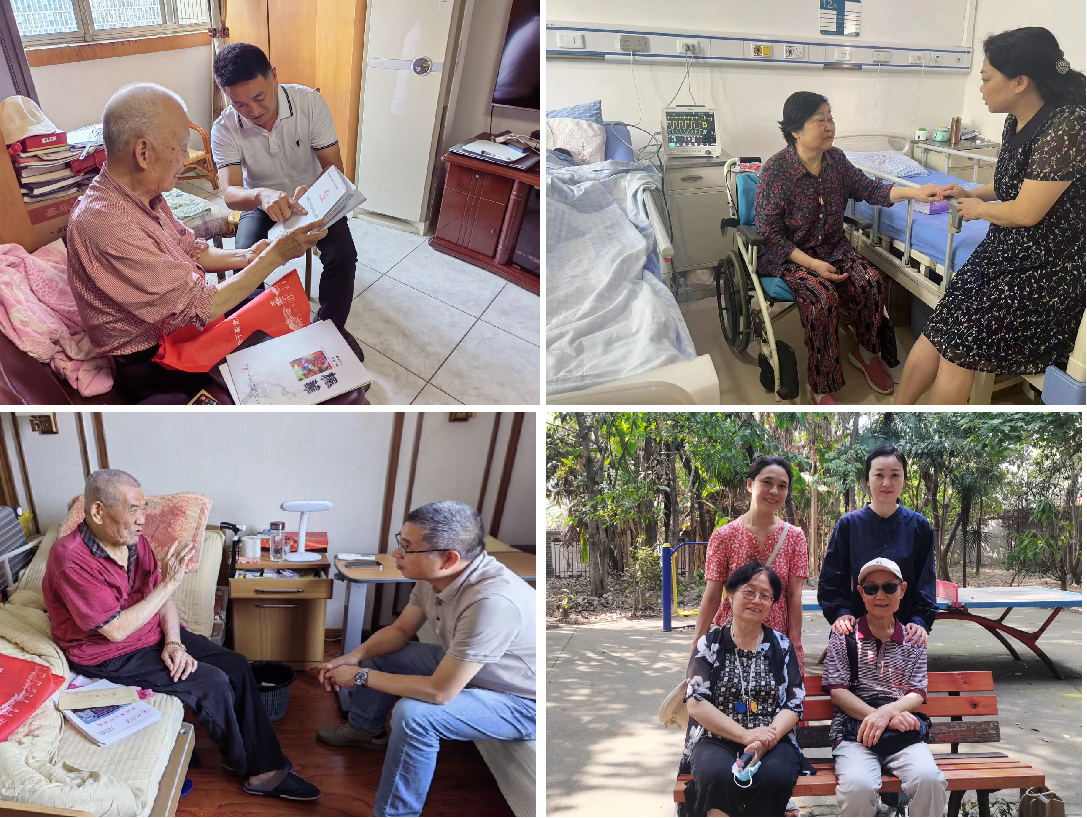 领导班子成员分别带队登门看望了离休干部、老领导、生活困难和重病的退休党员代表,向他们送上党总支编印的大字版《学习贯彻习近平新时代中国特色社会主义思想主题教育学习资料》,汇报了近期事业发展情况,感谢他们为学校事业发展的贡献和支持,祝愿他们节日快乐、健康长寿。老党员们纷纷感谢组织对他们的关心和慰问,并表示将继续关注和支持学校事业发展,为学校建设中国特色世界一流大学凝心聚力。